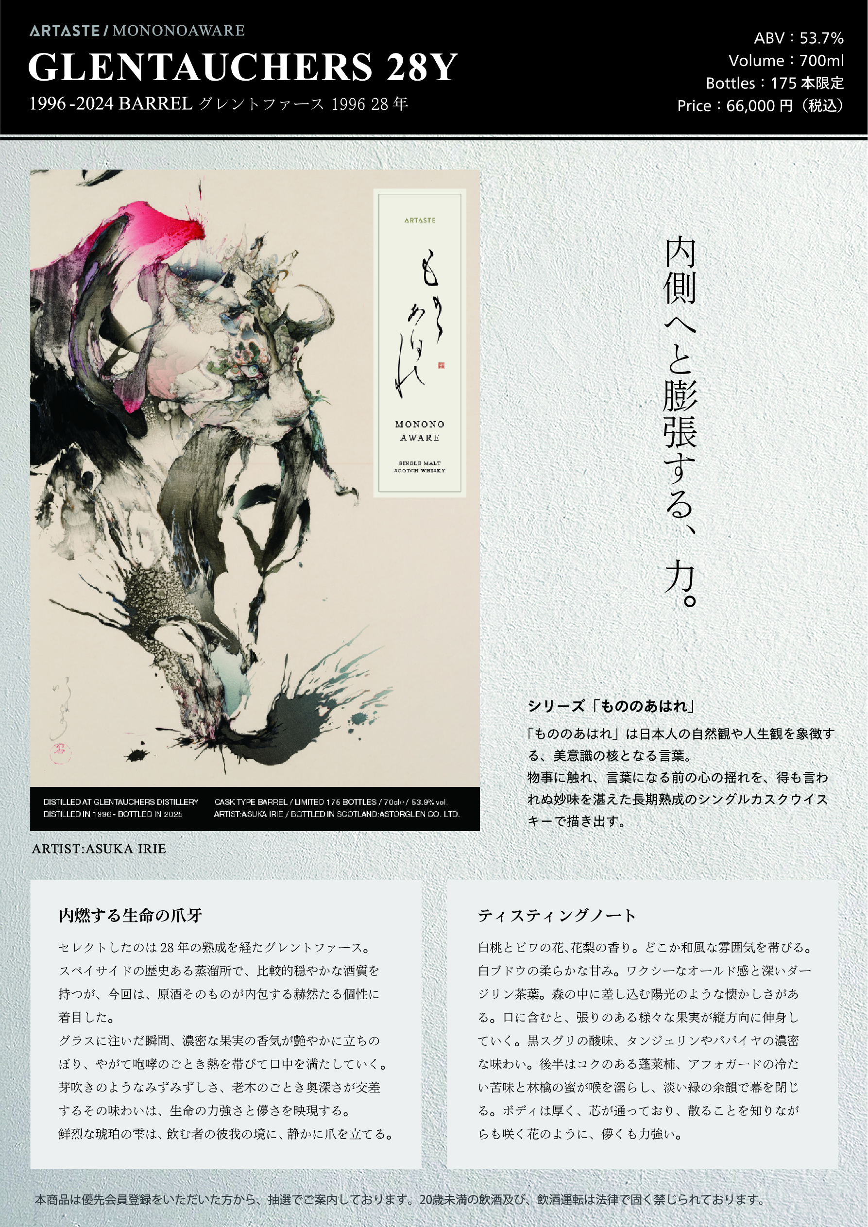 久しぶりの長期熟成シングルカスクでしたが、世界的に活躍する入江さんのアートワークと一緒に発表出来て感無量です。