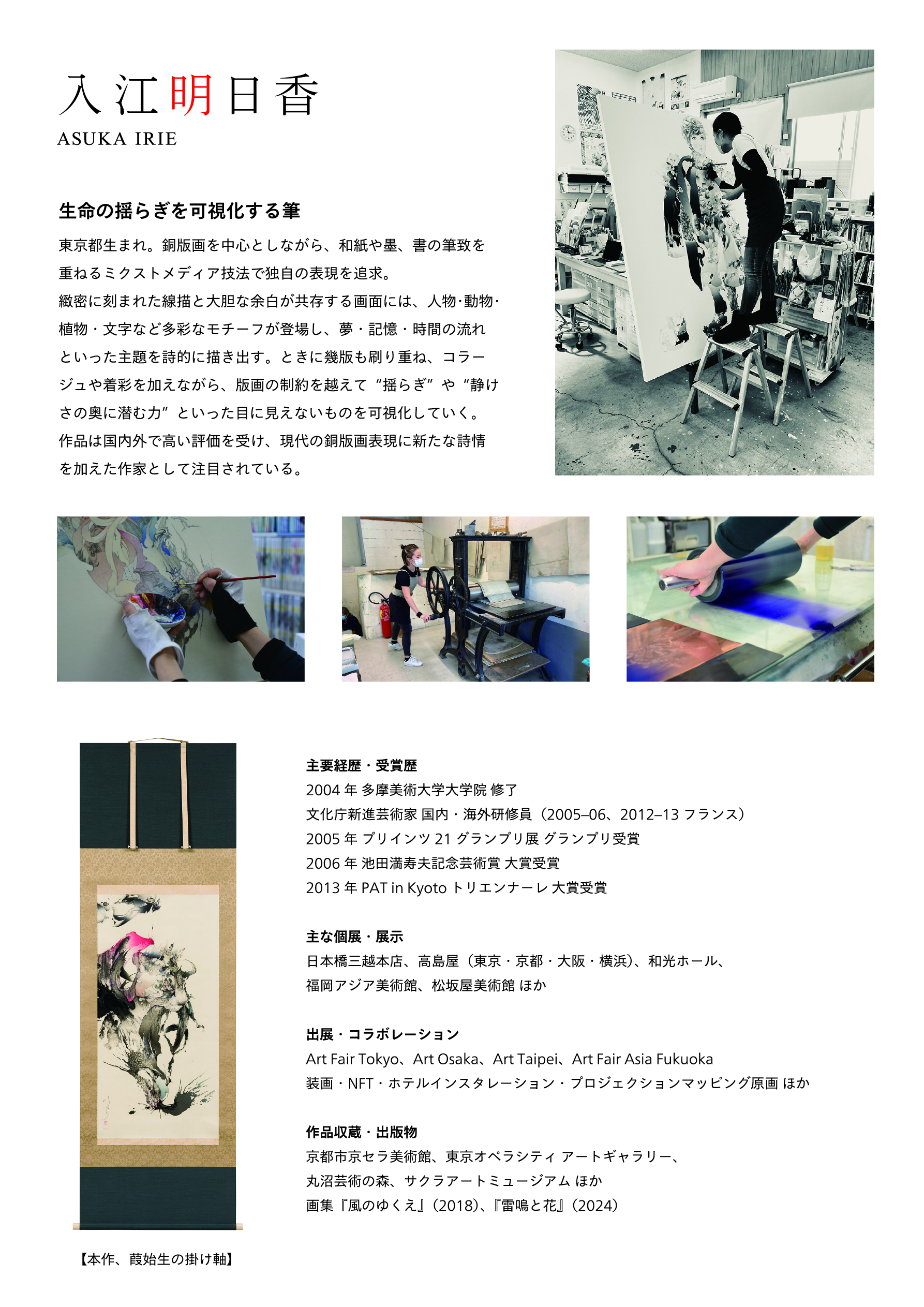 京都版画トリエンナーレ大賞受賞など輝かしい経歴を持ち、三越本店や全国の高島屋で個展開催を行う実力派。