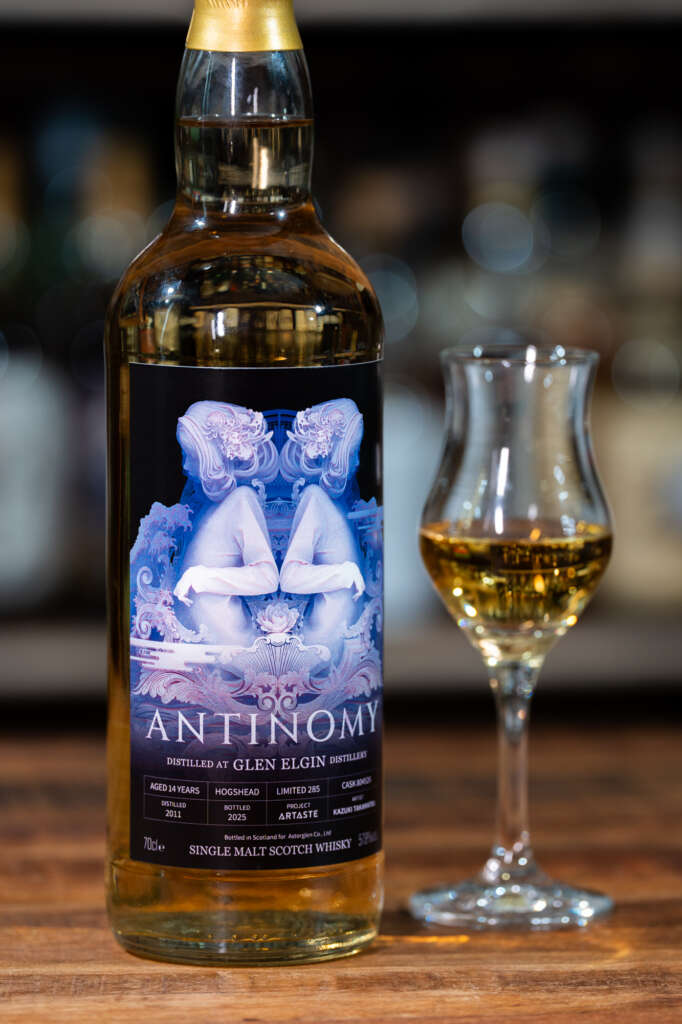 ウイスキー(グレンエルギン)のアンチノミーとしては、「ハチミツの甘さ」と「チリの熱さ」という対極の個性が、樽の中で中和されて別の味になるのではなく、どちらも独立した味わいとしてひとつのグラスに同居している状態。