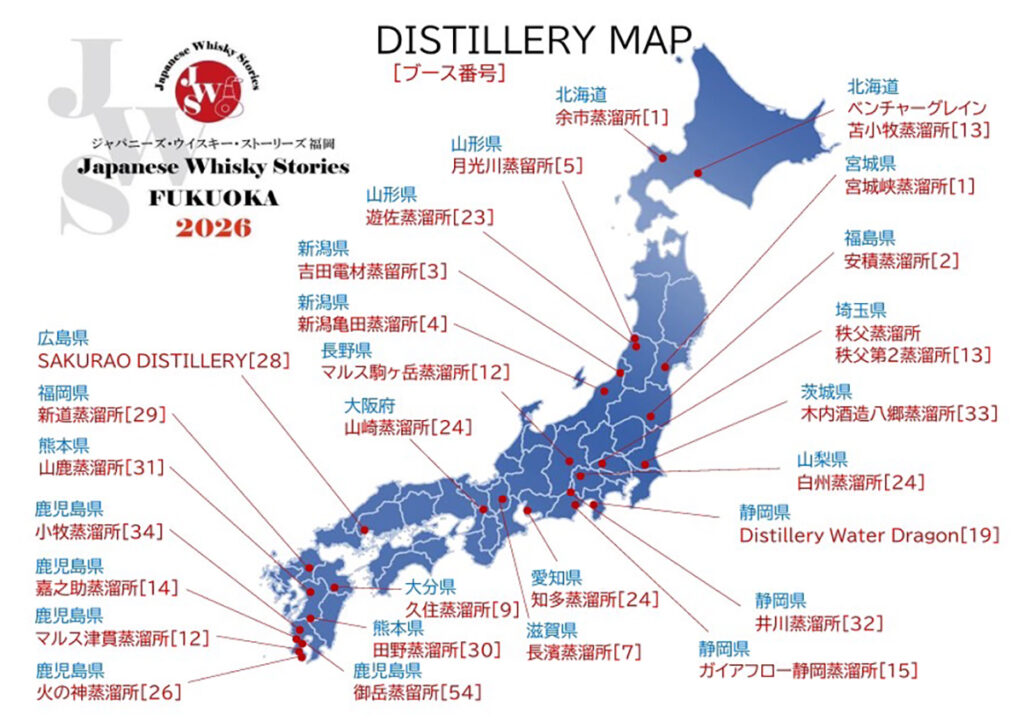 国産ウイスキー専門の試飲イベント「ジャパニーズ・ウイスキー・ストーリーズ福岡(JWS)」の第3回が、2026年4月5日(日)12:00〜17:00に福岡国際会議場 2F多目的ホールで開催されます。